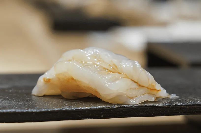 「齋藤さんは、その日の魚の状態に合わせて、切り方を少し厚くしたり薄くしたり、イカの場合は包丁を入れる量を調整したりしています。これこそ齋藤さんの職人技です。」
