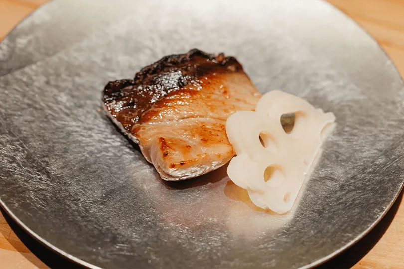 璃庵では日本の旬の食材を使用しており、コウイカと菜の花の酢味噌和え、京野菜「海老芋」、伝統的な煎り酒を添えたアマダイの鱗焼き、鰻の炭火焼き、ハマグリの汁もの、和牛のしゃぶしゃぶ、土鍋ご飯など、季節ごとに様々な料理を提供しています。