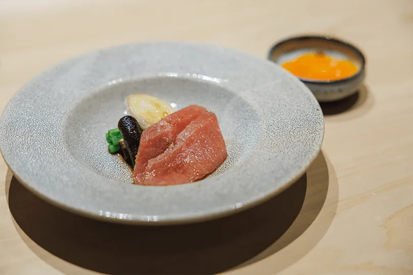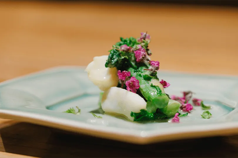 「彼の料理スタイルは進化を遂げています。香港時代の料理はより伝統的で、パイを多用し、非常にクラシックなフレンチでした。しかし今、東京では本当に新鮮な食材を豊富に手に入れることができる。そのため、彼の料理はよりシンプルに、より食材に焦点を当てたものになっています。」