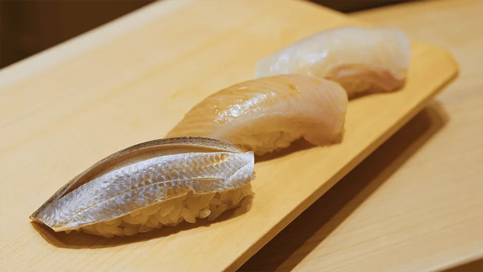 また、寿司には「流れ」が非常に重要です。一つ一つの握りが独立しているわけではなく、全体の流れの中で構成されています。浜田氏は「これはフランス料理やイタリア料理のコースと同じ考え方です。それぞれのネタを出す順番やタイミング、この小さな起伏や変化が大きな違いを生むとともに、最後に向かって盛り上がるように設計されています。」と説明します。