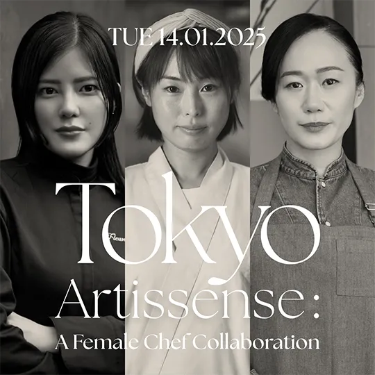 2025年1月14日。多くの人々で賑う渋谷スクランブル交差点を臨む会場「manoma」において、“Tokyo Artissense: A Female Chef Collaboration”と題したイベントが開催されました。企画監修を務める浜田氏の呼びかけに応じて、東京を代表する女性シェフ3名が集結。リレーのようにバトンをつなぎながら一夜限りの特別なコースを創り上げました。