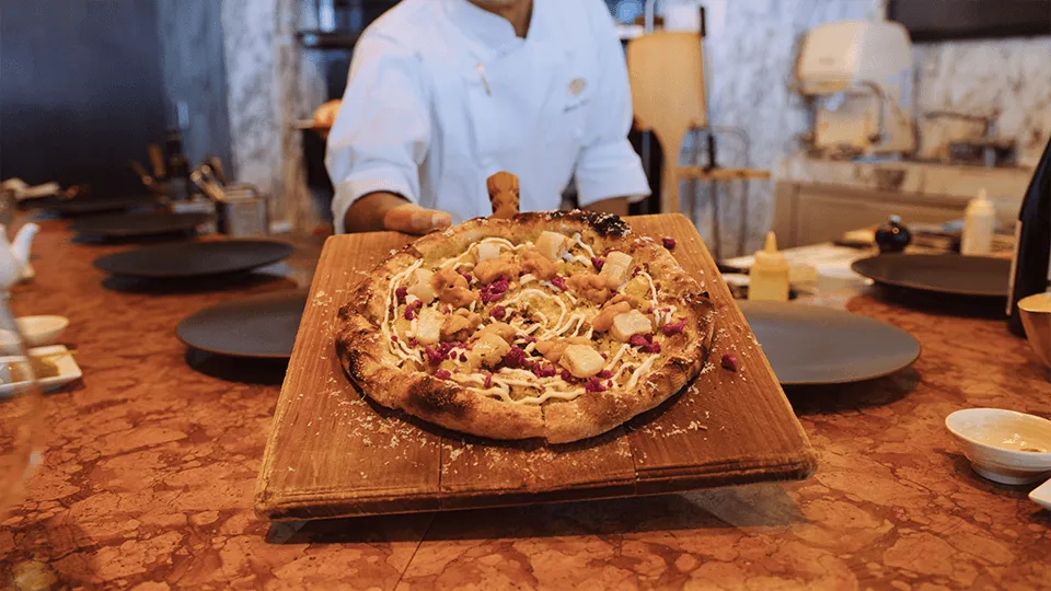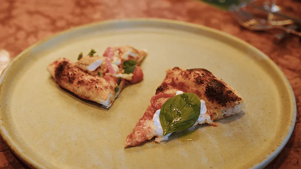 ピッツァ生地の小麦粉など基本的な食材は伝統的なイタリア産を使用しながら、カリフラワーやホタテ、ウニなど、東京で手に入る日本各地の新鮮な農産物や季節の食材を活かした料理が提供されます。
