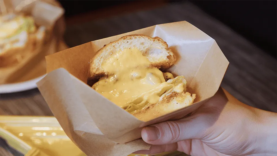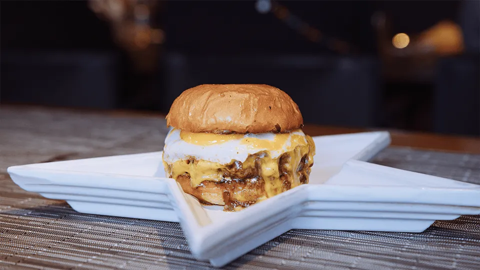 看板メニューのバーガーは、甘辛い照り焼きソース、香ばしくローストされた玉ねぎ、とろけるチェダーチーズ、そして半熟卵を重ね、一口ごとに豊かな風味が広がります。それでいて、決して味が強すぎることなく、絶妙なバランスが特徴となっています。