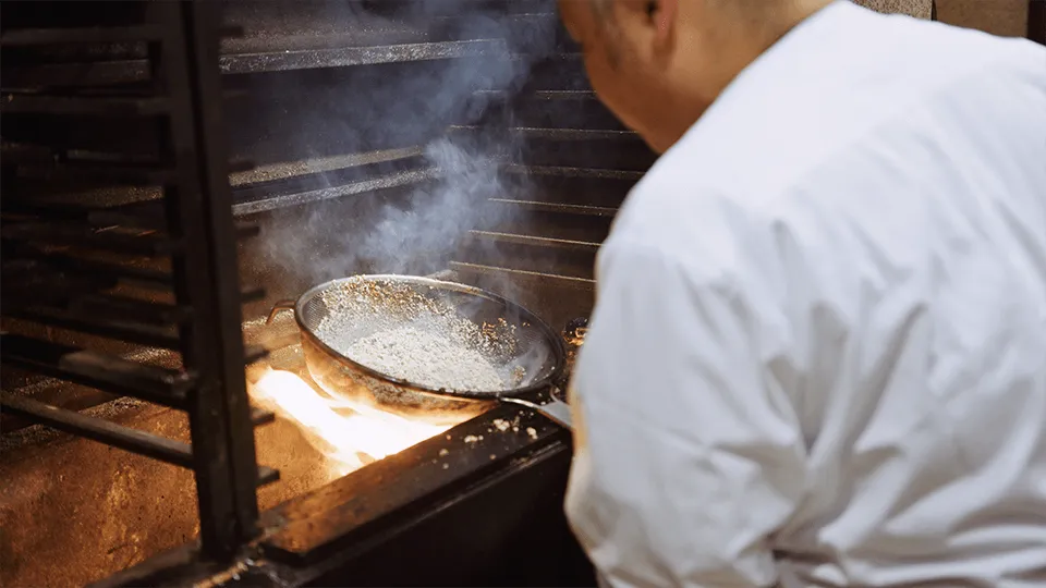 そして、日本の家庭でも食べられる「鶏そぼろご飯」も、まず薪火にかけて調理し、最後に鍋の内側に木を入れて蒸らすことで、香りを引き出します。「この素晴らしい香りは、薪火でしか出せないんです。」と浜田氏。